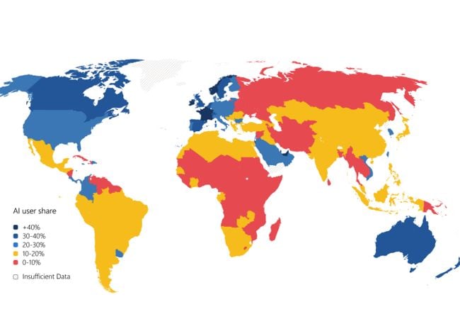 El resultado final es conocido como AI User Share, el porcentaje de la población en edad económicamente activa que emplea herramientas de inteligencia artificial. El trabajo contiene datos de unos 148 países.