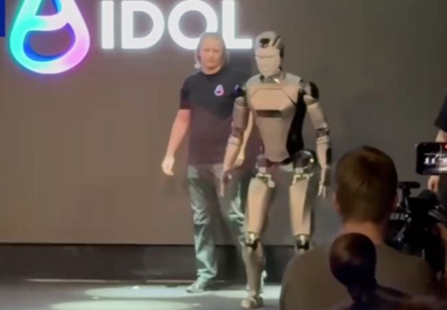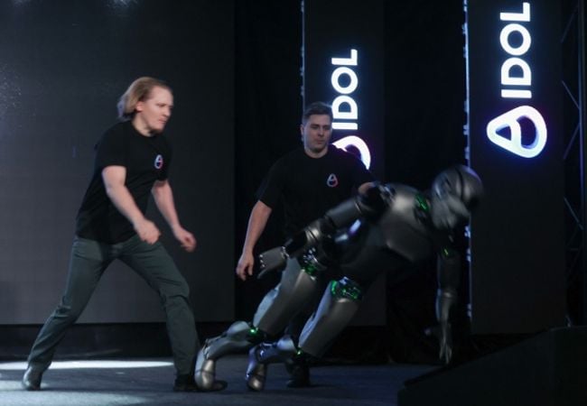 La compañía Idol presentó en el Centro de Congresos de Moscú una variedad de modelos de robots. Una gran parte de ellos estáticos pero capaces de interactuar con el público. Pero una de las estrellas del evento iba a ser AIdol un robot controlado con IA y capaz de caminar de forma autónoma.