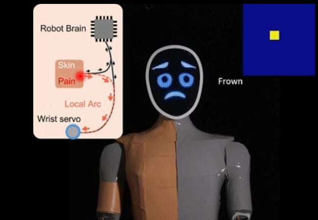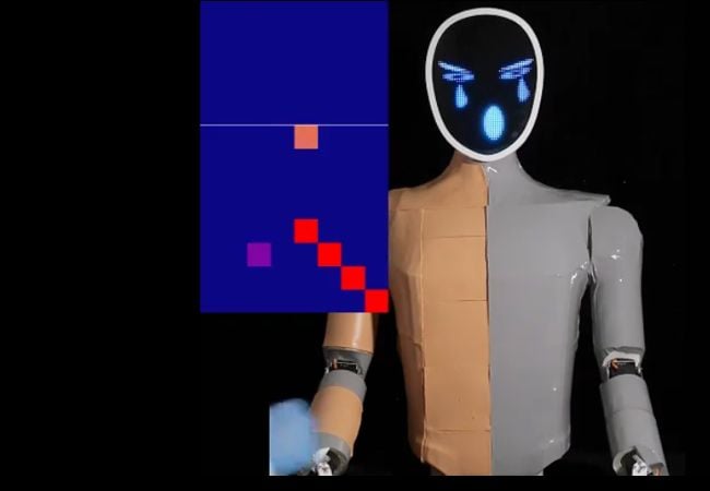 Volviendo a la piel robótica. Si la superficie es dañada o cortada el pulso se interrumpe y de esa manera el robot sabe donde ha sido dañado.