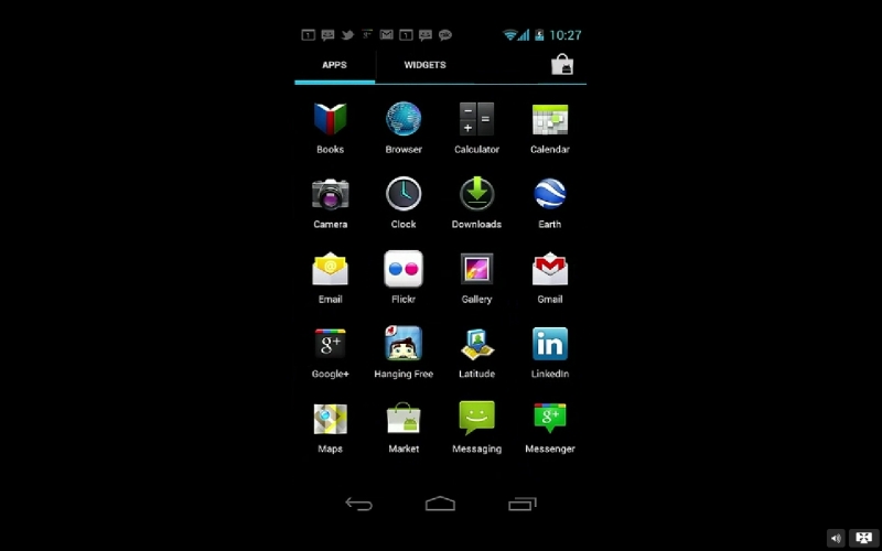 La barra superior nos permite desplazarnos sobre los diferentes escritorios, que a su vez contienen Apps o Widgets.