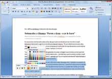 Luego de seleccionar un texto y dejar el cursor durante un instante sobre él, Word mostrará una nueva minibarra de herramientas con opciones básicas de formato y edición. La barra se mantendrá transparente a menos que pasemos el cursor sobre ella. Si por alguna razón nos molestara, o si los recursos del equipo fueran insuficientes para mostrarla sin que ella resulte inconveniente para el trabajo, podemos desactivarla.