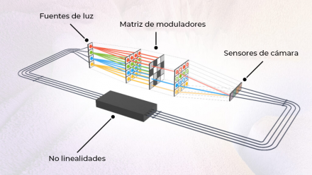 Este pipeline realiza el producto matriz-vector, eje de redes neuronales, con paralelismo masivo porque todos los haces viajan a la vez. La electrónica analógica posterior aplica activaciones y ajustes iterativos, cerrando el ciclo físico-digital.