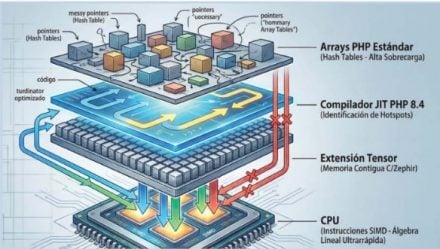 En el pasado 2025, con PHP 8.4+, el JIT ha madurado mediante la implementación de estrategias de compilación más inteligentes y heurísticas avanzadas. A diferencia de sus predecesores, el motor actual es capaz de identificar “puntos calientes” (hotspots) en el código, como los bucles de cálculo de distancia en un algoritmo KNN o las iteraciones de entrenamiento de una red neuronal, y compilarlos a código máquina nativo con una eficiencia que rivaliza con lenguajes compilados tradicionales.