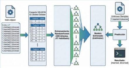 Random Forest es un algoritmo de “Ensemble” (conjunto) que entrena múltiples árboles de decisión sobre subconjuntos aleatorios de datos y promedia sus resultados para evitar el sobreajuste (overfi tting). Es robusto, versátil y funciona excelentemente en CPUs con JIT.