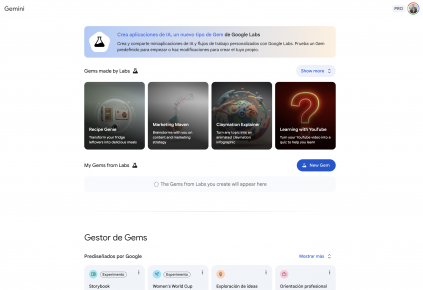 Google Gemini también ofrece Gems preconfiguradas para redacción, marketing, aprendizaje o análisis de negocio, que pueden utilizarse tal como están o adaptarse a necesidades propias. La disponibilidad depende del plan activo, ya que contextos más extensos y modelos de mayor rendimiento suelen estar asociados a versiones pagas.