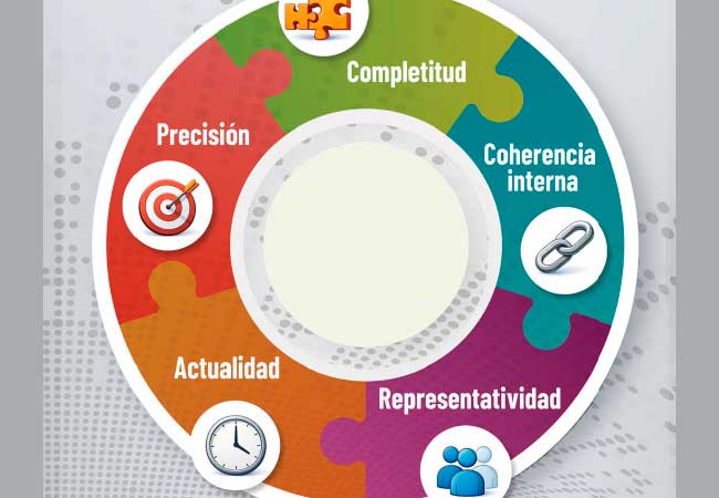 Por eso aparecen dimensiones como completitud, coherencia interna, actualidad, precisión y representatividad, que en el gráfico de la página 5 se muestran como piezas de una misma rueda.