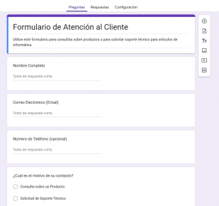 Para armar el formulario y la hoja de cálculo creamos un Google Forms estándar con las preguntas necesarias (Nombre, Email, Consulta, por ejemplo).