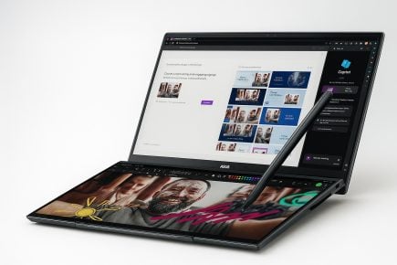 Comprender la evolución estructural y tecnológica de los paneles es esencial para realizar reparaciones seguras, precisas y acordes al estándar de los notebooks de última generación. En la imagen el ASUS Zenbook DUO cuentan con dos pantallas táctiles OLED de tamaño completo, con tecnología OLED 3K de 14 pulgadas y 120 Hz, en la que puedes ampliar instantáneamente tu espacio de trabajo hasta 19.8 pulgadas