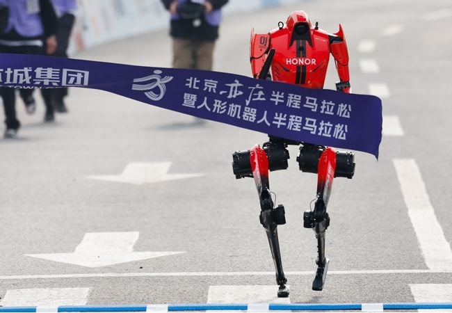 Un robot de forma humanoide se llevó toda la atención de los espectadores y la prensa durante la media maratón de Pekín. El domingo el ingenio de la compañía Honor completó los 21 kilómetros en unos 50 minutos y 26 segundos.